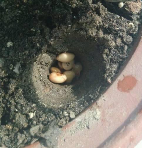 2、沿着虎皮兰花盆边缘,挖上至少3-5个小洞,每个小洞里埋上1-3粒煮熟的黄豆,用土掩埋即可,注意黄豆不要直接接触根系。