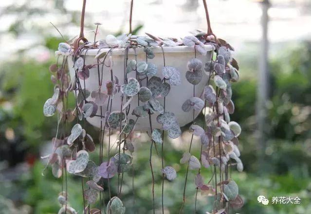 将一盆百万心挂在窗前或墙边,随风垂下一串串心形叶片,看着内心都变得柔软起来~百万心到秋季,还会绽放出白色的小花!
