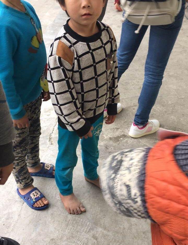 那么冷了! 这些孩子有些还光着脚、棉被也没有像样的