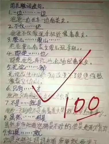 小学生造句, 妈妈看后心塞, 爸爸看后害羞, 但老师竟给了100分!