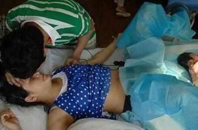 到医院医生检查就开了2指,直接让然然进入了待产房,她老会也跟她进了待产房。宫缩不强烈,医生建议打催产针,因为羊水破了,胎儿如果不尽早分娩出来的话,将会有很大的危险。打了催产针没多久,宫缩越来越强烈,还十分疼痛,下身还不停有血渗出来,然然老公看见了十分的心疼,紧紧的握住了老婆的手。