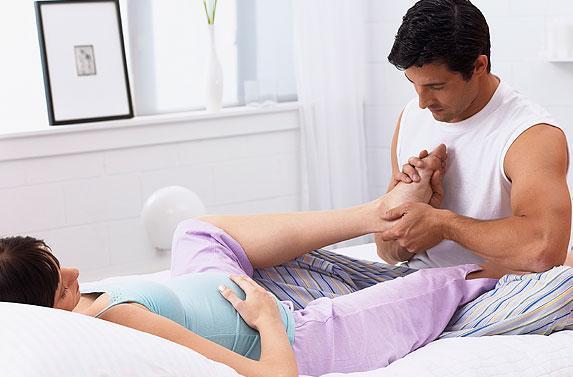 3、经常给孕妇按摩腿部。很多孕妇在孕后期都会出现肿胀酸痛的感觉,丈夫可以每天在睡觉前给孕妇的腿部进行按摩,这可减轻孕妇酸痛的感觉。