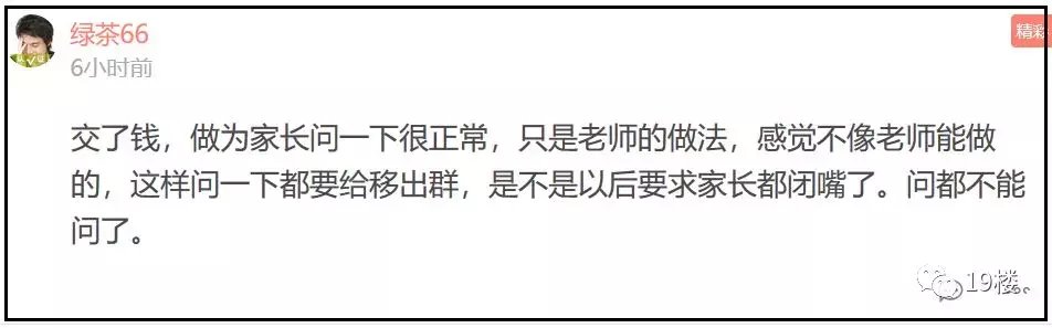19楼网友@爱爱爱爱爱爱发帖爆料:大家来评评理!我就在家长群里面问了一下事实情况,最后发了一个不做好人卡的表情,竟然把我移出家长群?!