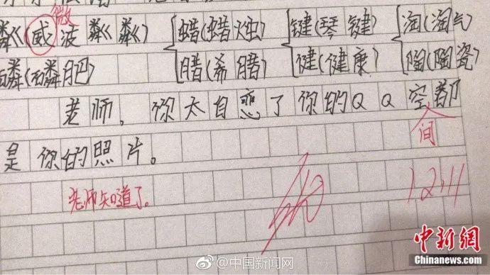 来看看这些熊孩子, 小学生在作业里留言: 老师太自恋, QQ空间都是自己照片!