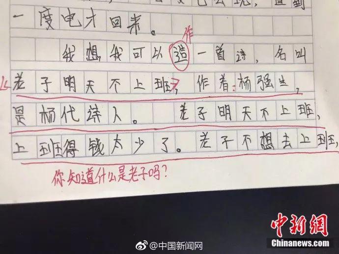 近日,贵州省谷陇翁板小学的语文老师张沁文,晒出了学生写在作业里的“金句”。