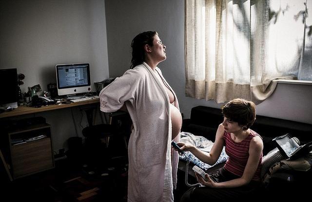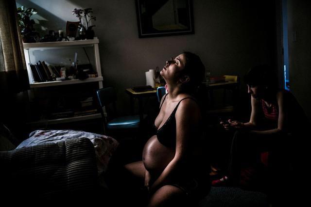 面对越来越强烈的阵痛,孕妇的表情越来越痛苦。
