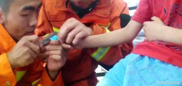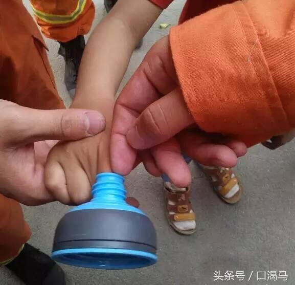 消防官兵到场后,经询问得知:孩子在喝水时,出于贪玩不慎将右手食指卡在了杯盖吸水口处;抹了点肥皂水,但是起不到任何作用。