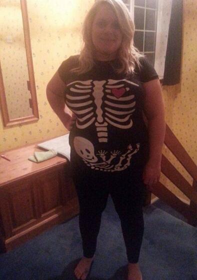 女子说她怀孕期间就会偶尔感到背部疼痛,低血压,她的工作很忙,一直持续到生产之前,图为她分娩前一周的照片。
