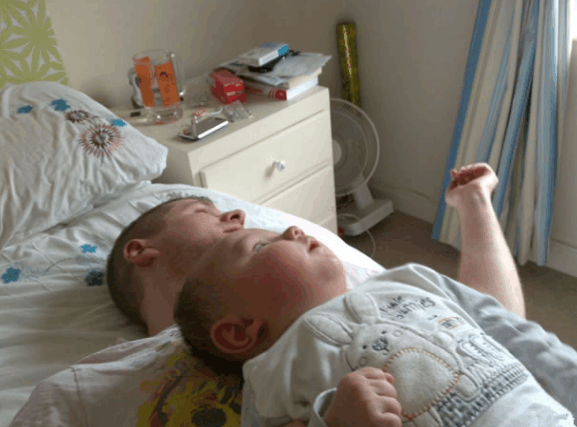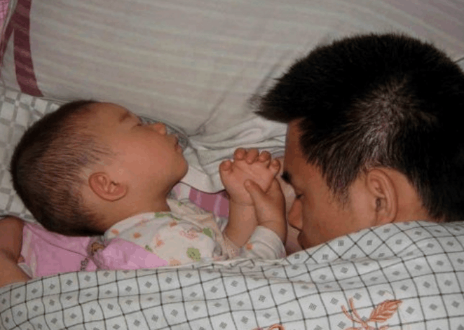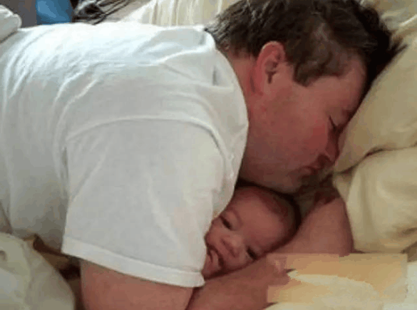 爸爸和宝宝一起睡觉, 是怎样的画风? 感觉既好笑, 又温馨!
