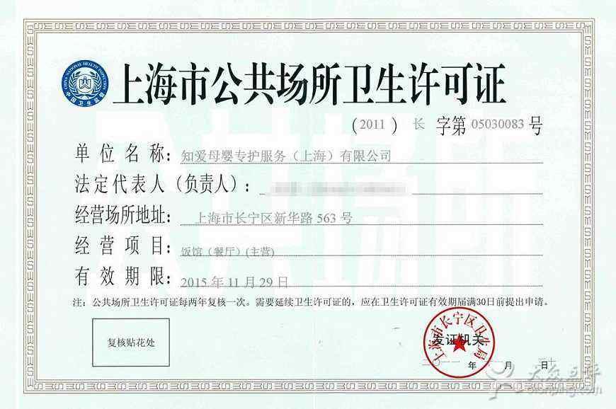 一家正规的月子中心一定是有市场和质量监督管理部门(原来的工商)颁发的营业执照、食品经营许可证(餐饮服务许可证)及卫生许可证(住宿)。证照上的地址和月子中心的地址和项目一致。这样至少在前期审批环节这家月子会所是合格的,并且经营者有意要认真经营,后期也有相关部门监管。