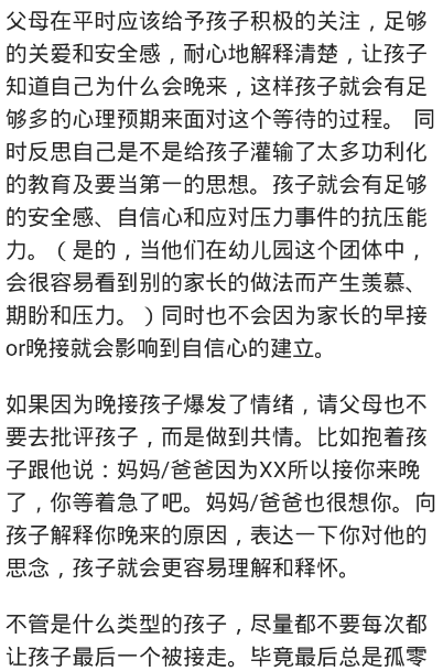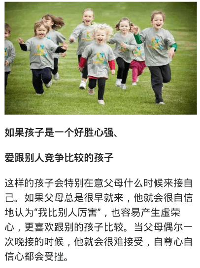 从来没和孩子说过这个问题,接孩子要排队,有时候卡着点去也不一定早,晚五分钟去了可能正好。不用什么事都扯到孩子一辈子的问题上吧!吃喝拉撒这么多事,每一条都分解出来家长就疯了