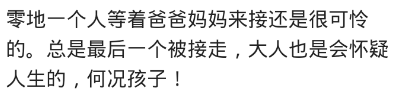 我小时候从上中班开始就经常没人来接了,我只能乘老师走开的时候自己偷偷地溜走,更悲催的是第二天当老师问起时还要骗她说是奶奶接我走的,可怜我那么小就学会撒谎了。唉!没办法,从小家里就没人稀罕我。心里总想忘记那灰色的童年,可却总会时常想起。事实证明童年的不快乐,确实会给人生带来阴影!