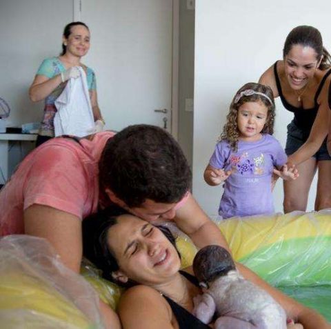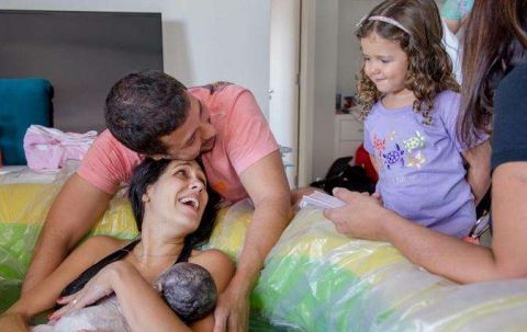 这是家人第一次共同参与这么特别的水中生产。艾丽娜把宝宝抱在怀内,早已把之前的辛苦都忘掉了。看着手中奇妙的新生命,一切都是那么不可思议的。