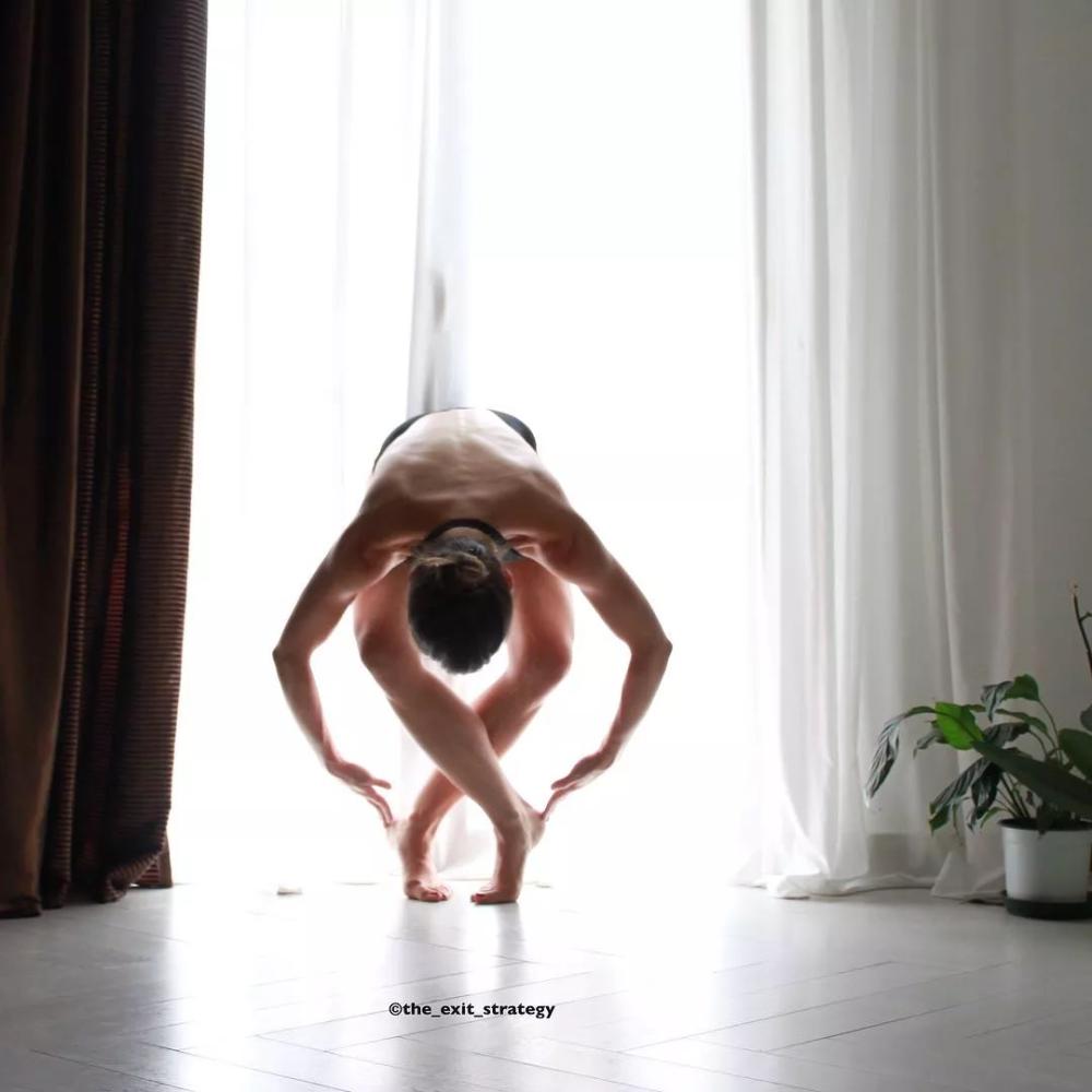 这个体式是以手掌作为支撑点,需要墙壁进行辅助,臀部靠在墙壁上,背部要紧紧绷住,眼睛可以盯住前方,除了臀部,其他部位都不能靠在墙壁上作为支撑,双脚向前绷住,双腿可以根据自己实际情况自行弯曲。这个体式有利于腰背及手部力量的锻炼,腿部的动作同时也加强了身体韧带的柔韧性,让自己的身材变的越来会儿苗条,成为女神指日可待。