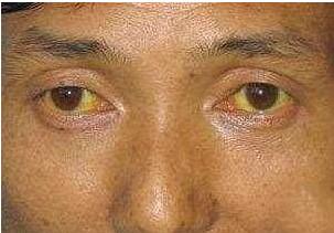 (左半为正常颜色,右半为黄疸的颜色)