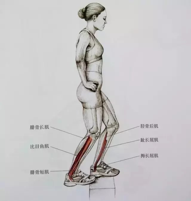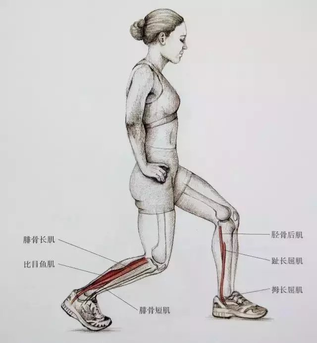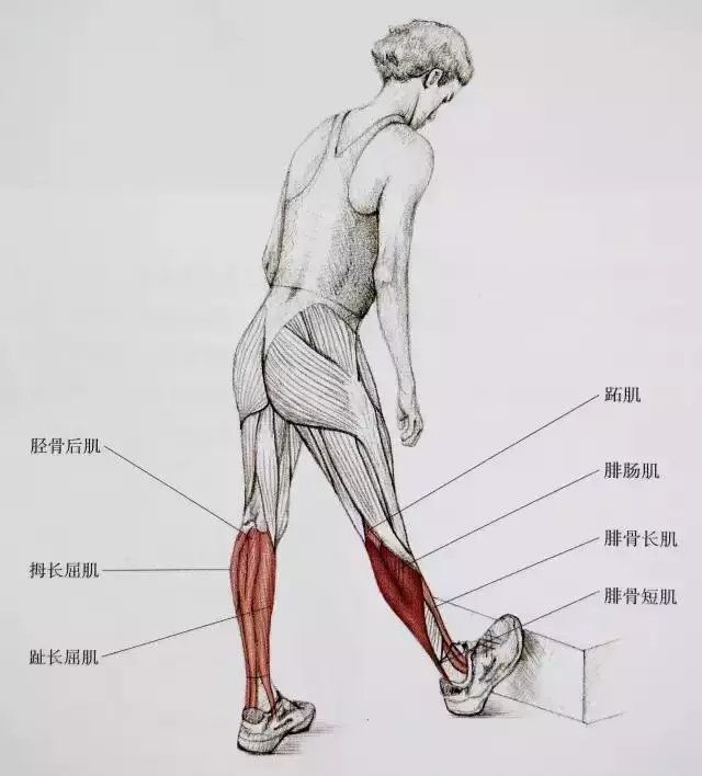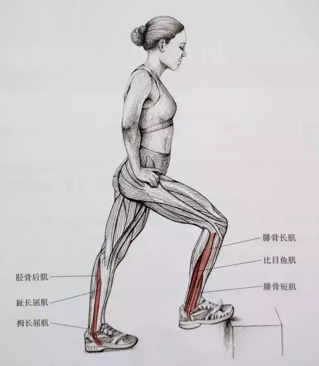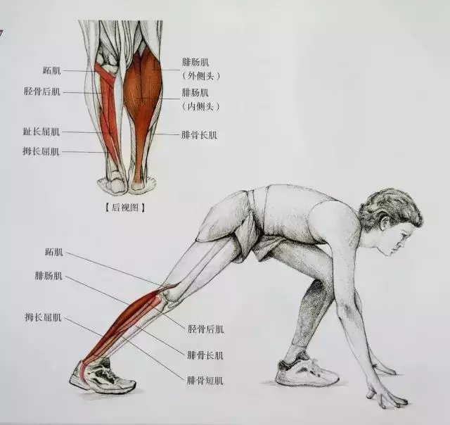 起跑式脚跟踩地拉跟腱
