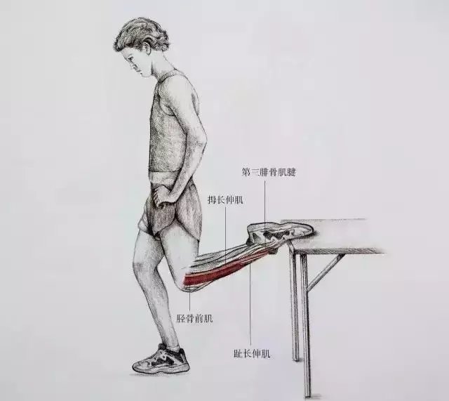 一脚在后的胫骨前肌拉伸