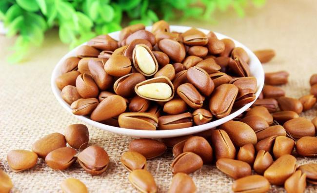 松子含极丰富的蛋白质、不饱和脂肪酸、矿物质,并含维生素A、B1、B2、E及多种微量元素。中医认为松子仁味甘性温,有补心肾、养血液、润肌肤、止咳嗽、润大肠之功效,宜于年老体弱、未老先衰、记忆减退、头晕目弦、习惯性便秘等症。