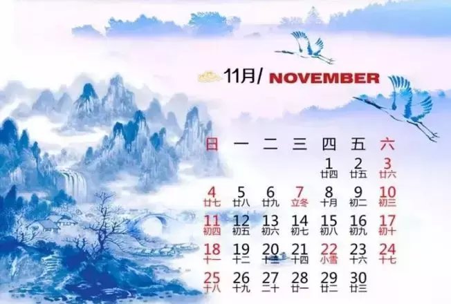 十一月包含立冬和小雪两个节气。此时,阴气进一步强盛,阳气进一步衰减,气温持续降低,天地万物的活动趋向休止,人体阳气也特别容易受到损伤。因此,此时养生要注意潜藏阳气,蓄积阴精,当以“早睡晚起,养阳固阴”为原则。