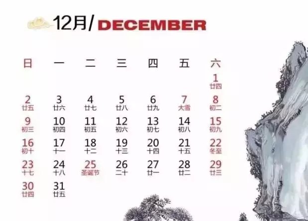 十二月包含大雪和冬至两个节气。此时天气严寒,昼短夜长,养生当注重祛寒保暖。到冬至那天,“阴极之至,阳气始生”,由此进入一年中最寒冷的时候,因此要注重敛阳培元,尤其身体虚弱之人,还应适时进补。